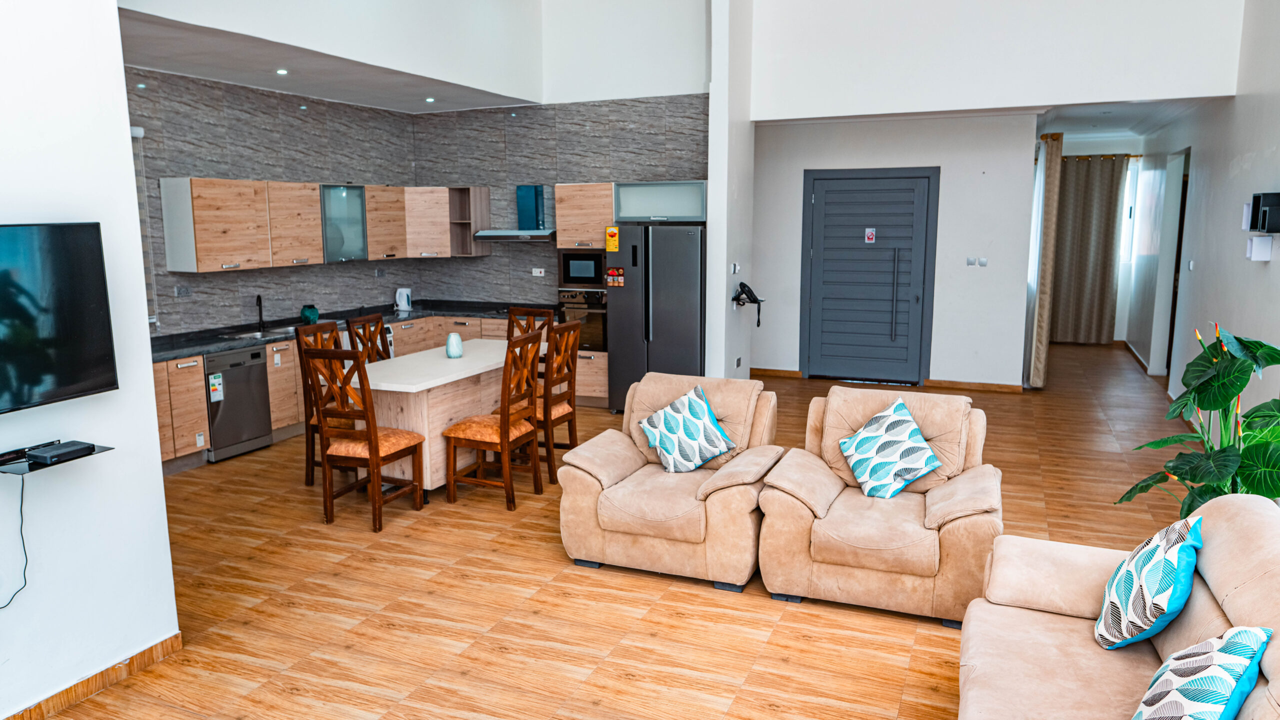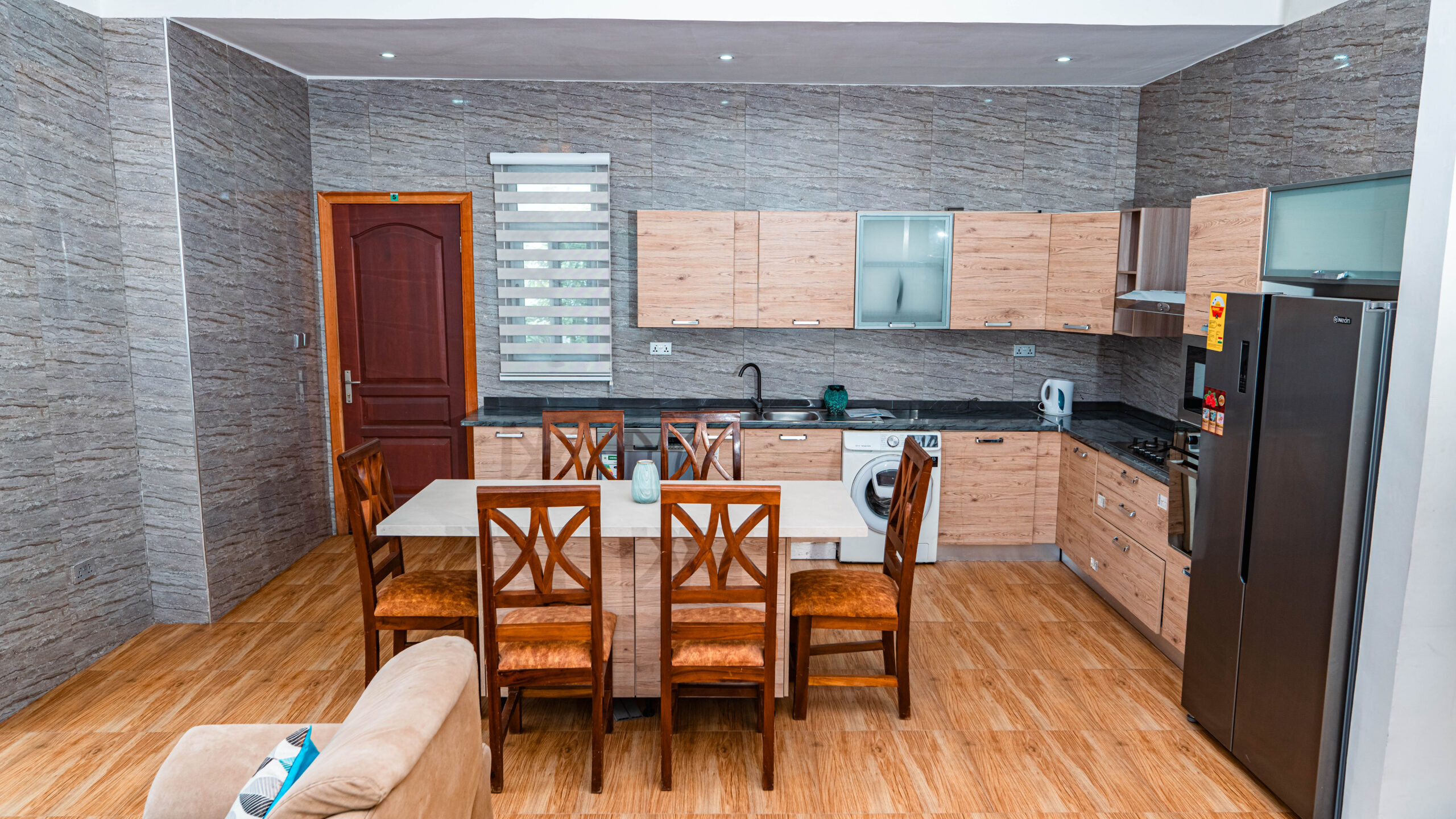 Three (3) bedrooms house self catering, living, kitchen, en-suite bedrooms with private swimming pool etc. For 5000 Ghc per night with breakfast for 6 adults